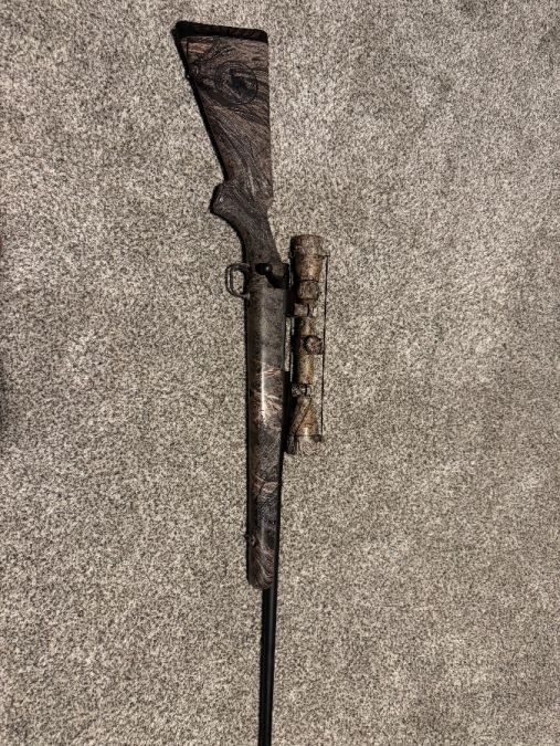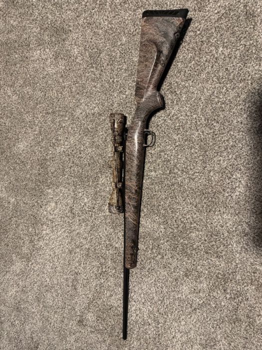 Mossberg 270 bolt action. Older Bushnell scope. Was my deer gun growing up. Sage Brush camo pattern.