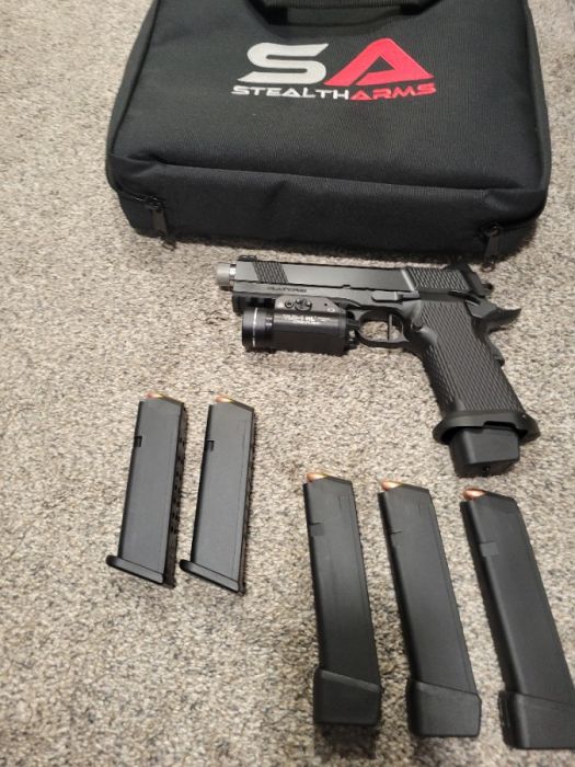 Like New, Stealth Arms Platypus 5" only had 100rds through it before being put in the safe, very clean cut for RMR/SRO, comes with TLR light asking 2200 cash no trades. Please text or email only. God Bless
