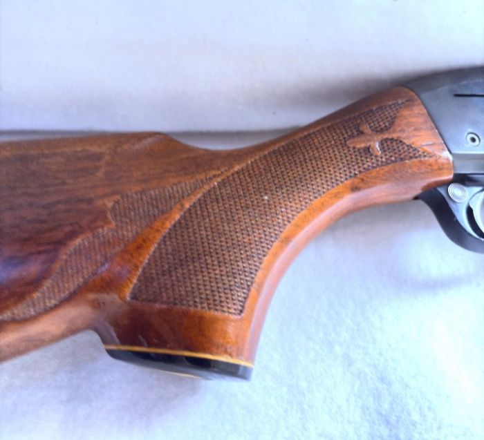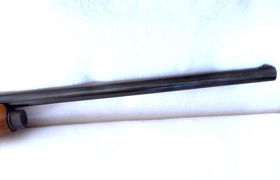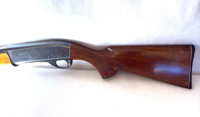 I took this Remington 1100 12 ga. 2 3/4" in trade; 1970, mod barrel, checkered forearm & stock, bright barrel, loads & ejects low base shells easily, good bluing, white diamond grip cap, white butt plate spacer, refinished wood, engraved receiver, Remington butt plate & 28" barrel. Serial #; 279911V.....produced May 1970. It looks very good at 10', can see sanding marks up close on stock...polyurethane finish. I test fired it with some low base shells and it loaded and ejected them without hesitation. The barrel looks like new, as it's bright and chrome-like. Not interested in shipping it. We're 1/2 way between Boise and MH.