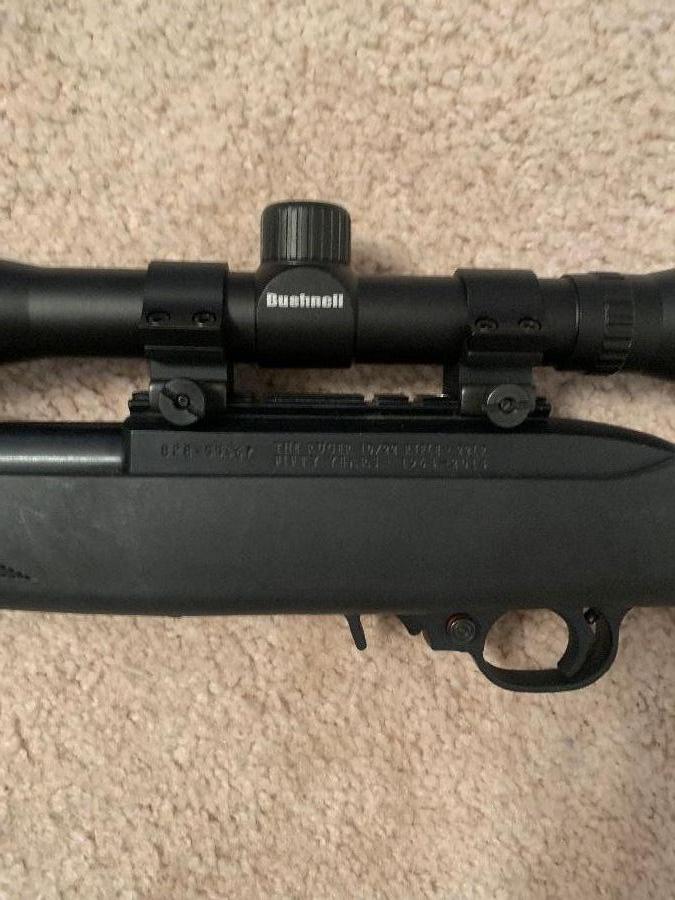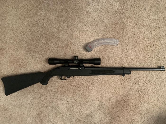 Up for grabs is my 50th Anniversary 10/22. Comes with a fixed power bushnell scope. In great condition. Only shot acouple of times. Mainly just a safe queen. $350 obo.