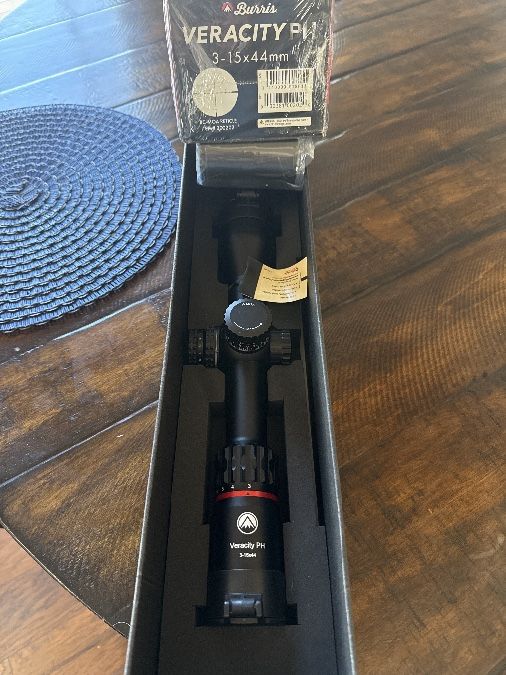 I'm selling a new only box opened for the pictures. Burris Veracity PH HD Gen 2 3-15x44 RC-MOA reticle. Selling for $700 . This is a brand new scope, only taken out of the box for this picture. This scope is at Scheels for $1199. image.jpg