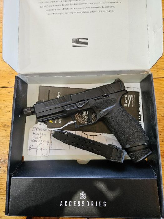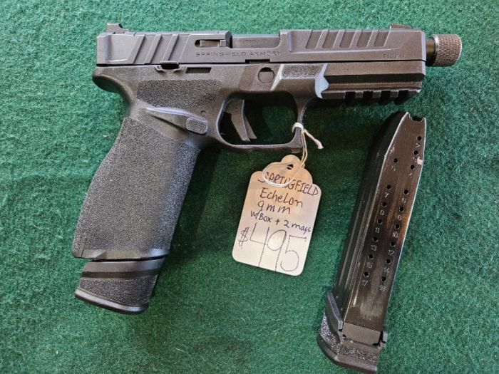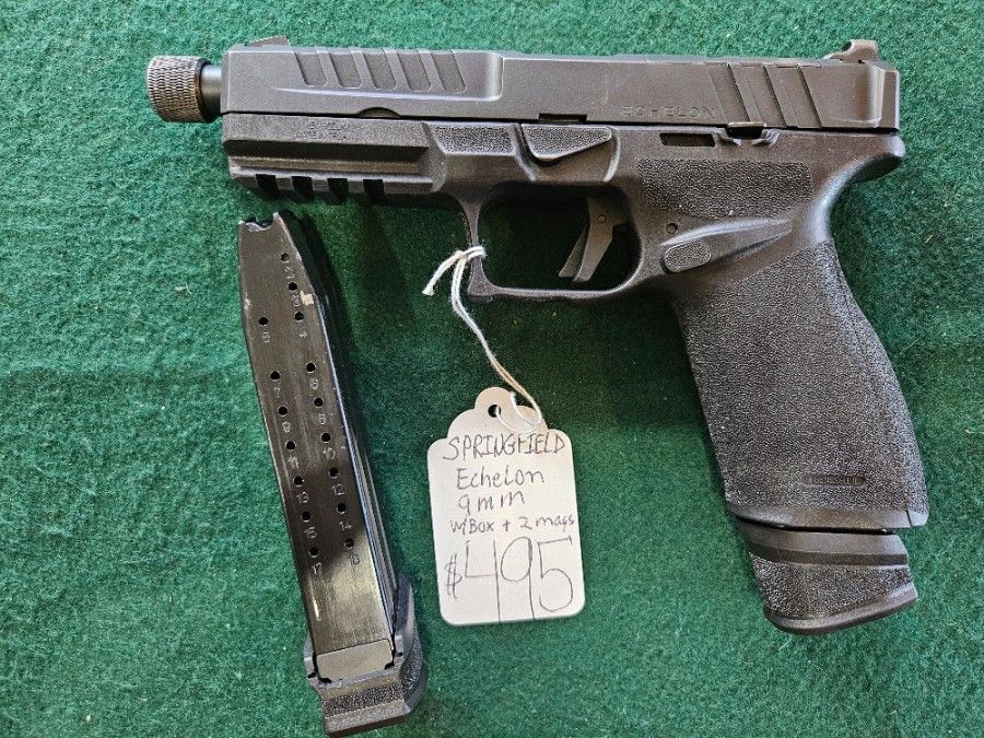 SPRINGFIELD ECHELON OSP 9MM WITH THREADED BARREL. FACTORY BOX WITH 2 EXTENDED MAGS.. CALL 208 365 9881 OR COME GET IT AT KINGFISHER SPORTING GOODS & PAWN EMMETT IDAHO. WE ALSO DO LAYAWAY.. 3% CHARGE FOR CARD PURCHASE.. CASH IS KING