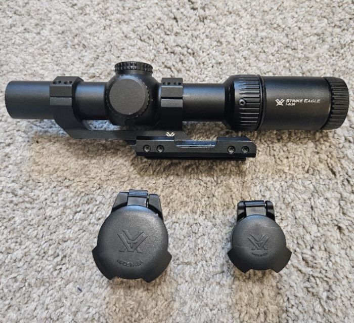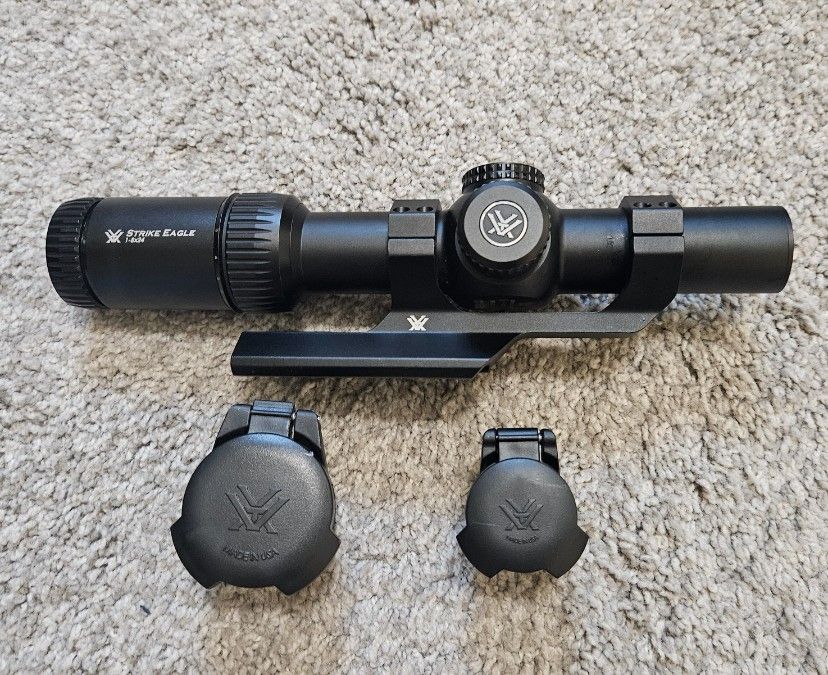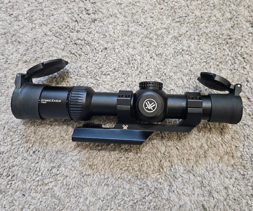 Vortex Strike Eagle 1-8 x24 with Mount Vortex Flip Caps Going with a different set up, not using this now. Nice scope in good shape, just put a new battery in it. Original box not included. $450 Cash May be open to trades