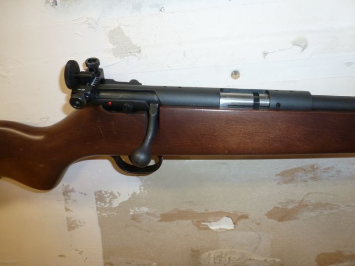 very nice youth 22 Cal Savage Arms Mark I 22 Long Rifle Compact Satin Blued Bolt Action Rifle - 19in - Mark I rimfire rifles offer fun shooting coupled with safety for novices with this single-shot bolt action with one-round-at-a-time shooting. AccuTrigger is a standard feature offering a user-adjustable trigger pull, so there's no need for a gunsmith to modify it. AccuTrigger also provides a crisp, clean trigger pull, which enhances accuracy. The barrel is made of blued, 21in carbon steel and is set in a walnut-stained hardwood stock with a Monte Carlo-style comb and a high luster finish. It is drilled and tapped for scope mounts with open sights