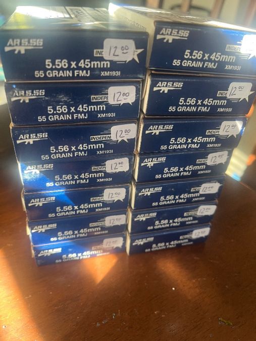 10 boxes 5.56x45mm total of 200 rounds. 55 gr FMJ brass cased. first 100.00 gets them. Open to trades what do you have? Shoot me a text or call 208-841-3745 thanks for looking.