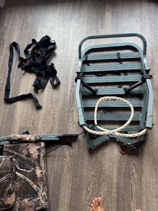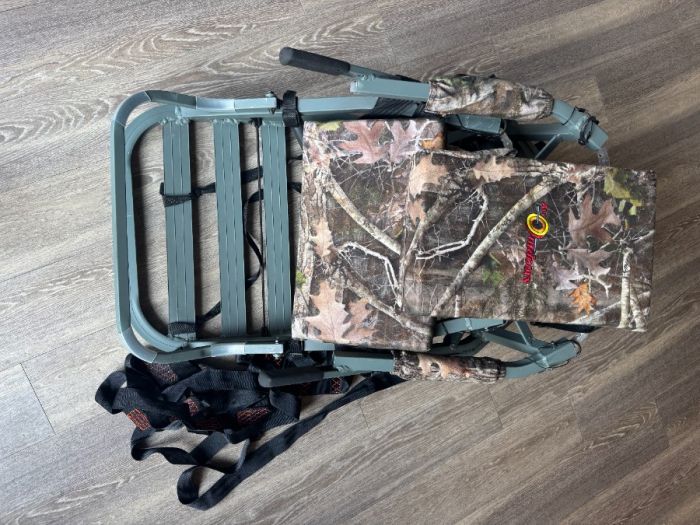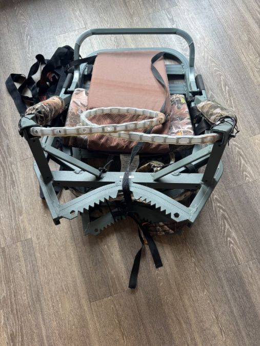The API Outdoors® Alumi-Tech® Bowhunter Climbing Treestand is designed to give bowhunters an unrestricted, wide-open shooting window on every shot. All-aluminum construction and quick-adjustable climbing chains for quiet and solid setup. Includes accessory bag, backpack straps, climbing brackets, and footrest. Seat: 17"x 11"x 2". Backrest: 11"x 17"x 2". Inside climber: 19"x 20". Platform: 20"x 28". Weight: 23 lbs. Maximum weight capacity: 300 lbs. Manufacturer model #: ACL205-A. Designed to give bowhunters an unrestricted, wide-open shooting window on every shot Streamlined design decreases overall weight and enhances performance Classic stand up/sit down design Power-gripping chains adjust easily to fit trees 9"-20" in diameter Folding footrest for added comfort Traction ridges on all platforms Tapered design allows for more chain contact with the tree for more stable climbing Reinforced closed triangular extrusions deaden sound and increase strength Includes backpack straps, climbing brackets, footrest, and accessory bag Includes Full-Body Safety Harness with climbing belt, suspension relief strap