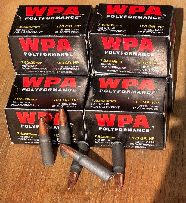 Wolf WPA 123 grain full metal jacket bullet *Hollow Point* Non-corrosive Berdan primed steel case (Barnaul Cartridge plant manufactured) 500 rounds (25 boxes of 20 rounds) $250 Single boxes of 20 rounds available for $11 each Cash only - Open all day every day. Lots of calibers available - Pick up In Nampa - No trades, Price is Firm - No limit - 500 rounds $250 / 20 rounds $11 (Sales tax is included) - TEXT-208-880-eight450 **available 7 days a week** (please use the "My Other Listings" button to see more ammo deals)