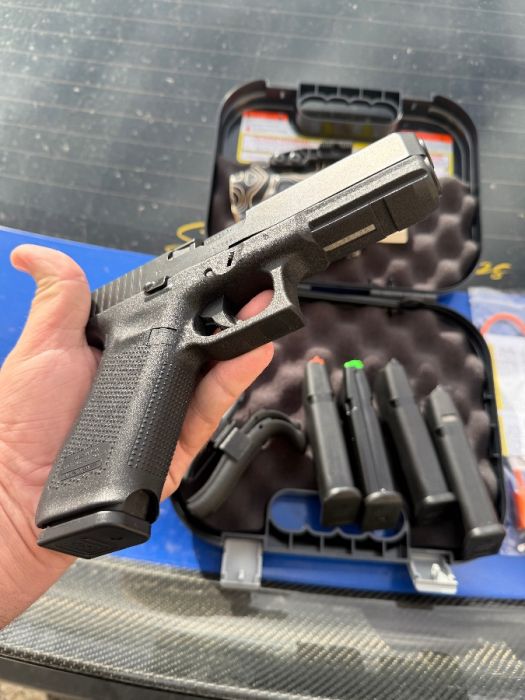 Selling a very low round count(100ish rounds through it) early Gen 5 Glock 17M. It’s not a factory refurbished model(where they strip the DLC from it during refurb), nor is it the Lipseys version. Has the DLC trigger bar, moon cut, and factory Ameriglo iron sights. Will come with 4 Glock brand 17rd mags, and 1 MecGar brand 18rd metal body magazine, and an IWB Guerilla Tactical holster for x300. Asking $650 OBO, cash. Located in Meridian. Text me at (318) 918-0417
