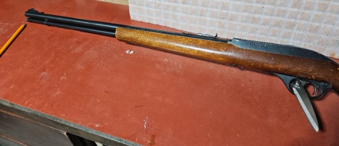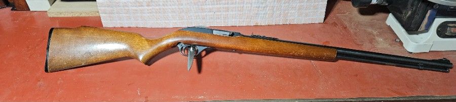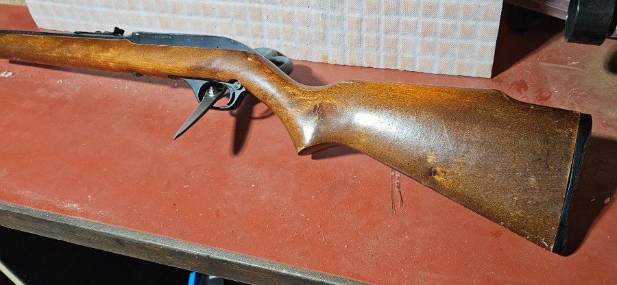 Marlin Model 60 semi-auto .22 S/L/LR. This is a fine shooter but I bought this as a restoration project that I don't think I will get around to any time soon. Cosmetically it is could use some updating/personalizing but would make a nice introductory rifle for a child/grandchild for Christmas.