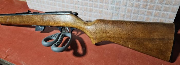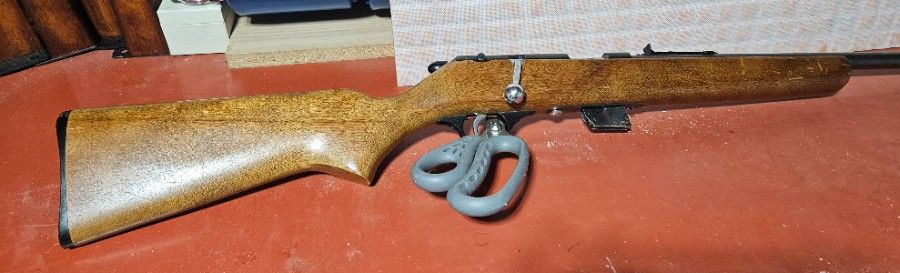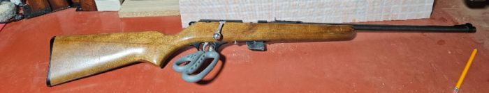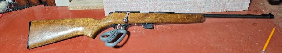 Marlin Model 80G bolt action 22 S/L/LR. This is a fine shooter but I bought this as a restoration project that I don't think I will get around to any time soon. Cosmetically it is could use some updating/personalizing but would make a nice introductory rifle for a child/grandchild for Christmas.
