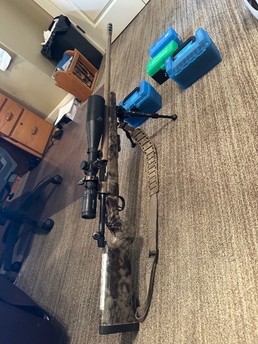 Description: MOA rifle built out of Redmond Oregon. MOA 1000 is a turnkey 1000 yard proven precision rifle. Built on a Model 700 action with a Timney Hit trigger. Bipod not included. Includes Arca Swiss plate, bubble level and Topped with a Nightforce 4x14x56 mm scope with zero stop turret and ballistic glass. 26” barrel with a muzzle break. It is very sturdy and fun to shoot with reduced recoil. The other part of the precision performance is the special recipe loads. It shoots a 195 Berger Elite Hunter at 2995 FPS. I have 200 rounds of ammunition to include in the purchase price. This is a hunting rifle that has been on several spectacular hunts! It has a few wear marks on the stock and is priced accordingly. I am the second owner and bought it from a great friend. It should be a great deal for someone who would appreciate it. It only has about 400 rounds fired through it. This is by far the best shooting rifle I have ever owned. However, spending more time fishing these days. Price $2850.00