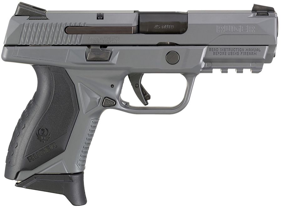 Ruger 8649 American Pro Compact 45 ACP 7+1 3.75" Black Nitride Steel Barrel, Elite Concrete Cerakote Serrated Stainless Steel Slide, Gray Cerakote Polymer Frame w/Picatinny Rail, Textured Wraparound Grip, Right Hand.