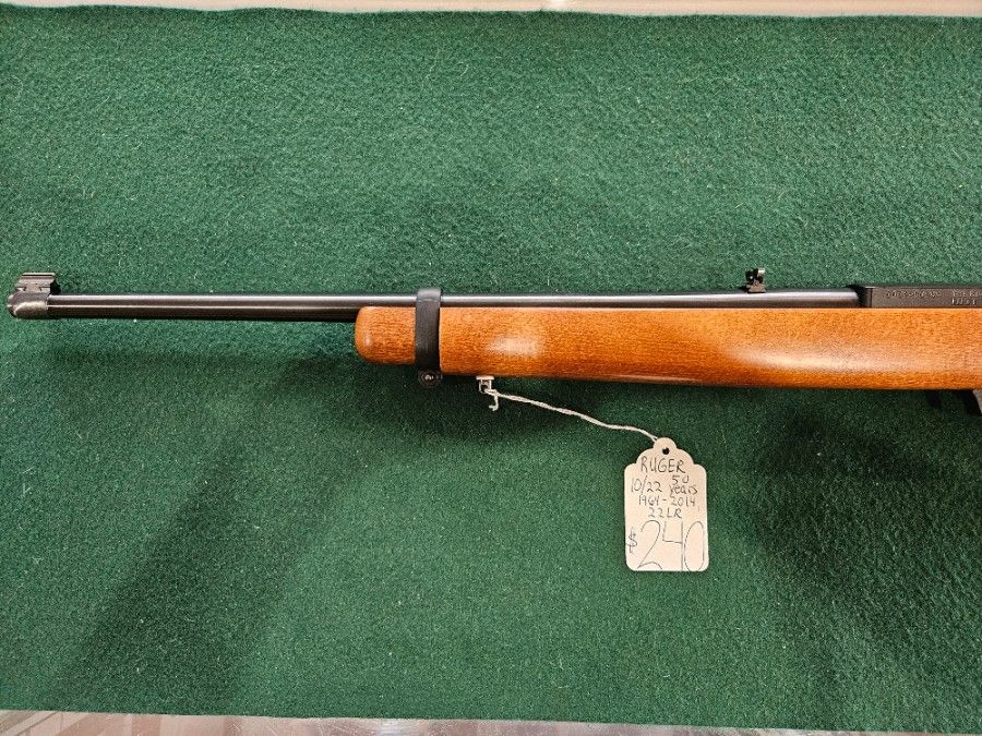 LIKE NEW CONDITION RUGER 10/22 50 YEARS 1964-2014 22LR SEMI AUTO RIFLE.. WOOD STOCK.. CALL 208 365 9881 OR COME GET IT AT KINGFISHER SPORTING GOODS & PAWN EMMETT IDAHO.. WE ALSO DO LAYAWAY.. 3% CHARGE FOR CARD PURCHASE.. CASH IS KING