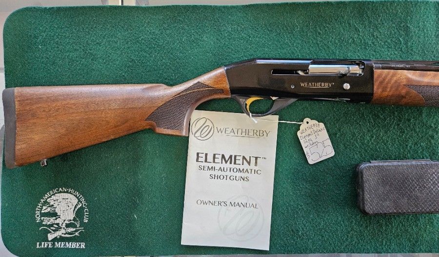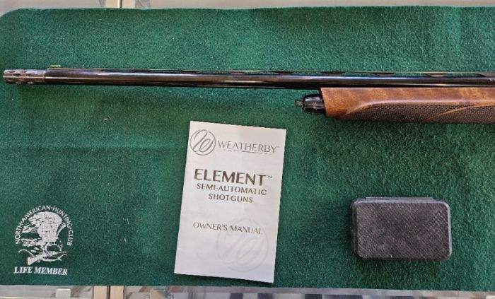 NICE WEATHERBY ELEMENT DELUXE BACK COUNTRY HUNTERS & ANGLERS 12GA 28" BARREL SEMI AUTO SHOTGUN.. TURKISH WALNUT CHECKERED FORARM & STOCK.. EXTENDED AVIAN X CHOKE WITH 3 REGULAR CHOKES & MANUAL.. CALL 208 365 9881 OR COME GET IT AT KINGFISHER SPORTING GOODS & PAWN EMMETT IDAHO.. WE ALSO DO LAYAWAY.. 3% CHARGE FOR CARD PURCHASE.. CASH IS KING