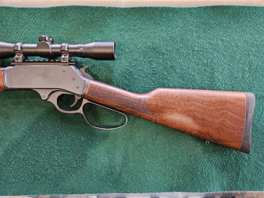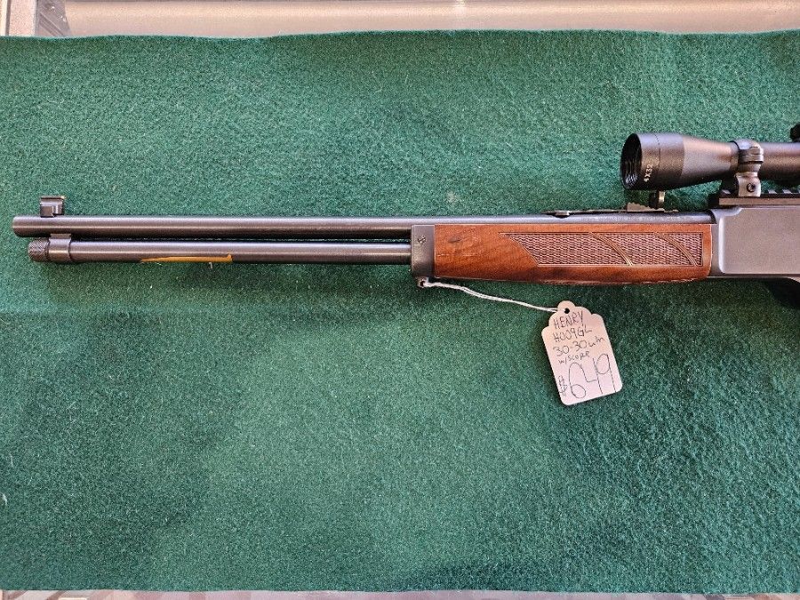 HENRY MODEL H009GL SIDE GATE 30-30WIN BIG LOOP LEVER ACTION RIFLE WITH 4X SCOPE.. CALL 208 365 9881 OR COME GET IT AT KINGFISHER SPORTING GOODS & PAWN EMMETT IDAHO.. WE ALSO DO LAYAWAY.. 3% CHARGE FOR CARD PURCHASE.. CASH IS KING