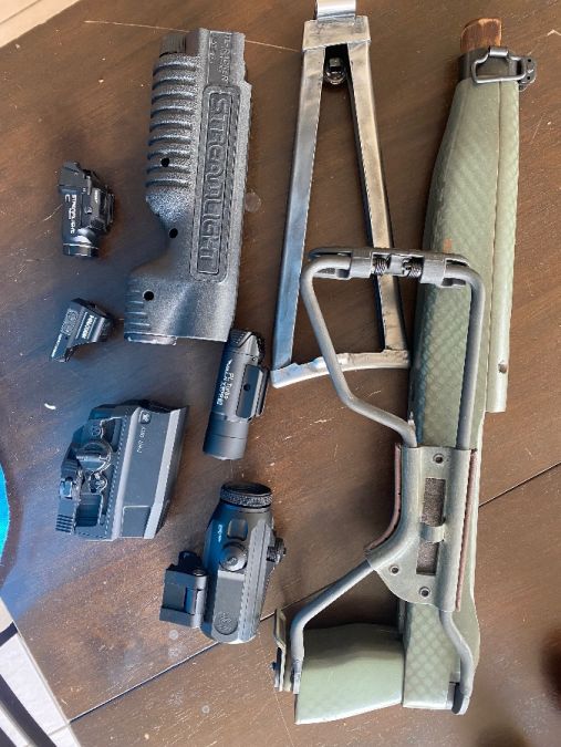 Vortex AMGUH1 gen 2 asking $400 holosun 407c x2 $150 streamlight TLR-7 sub $75 Olight Valkyrie turbo $60 streamlight TL-RACKER for Remington 870 $75 monstrum x5 magnifier $50 AKm folding triangle stock 4.5 $50 Ruger 10-22 paratrooper stock $75