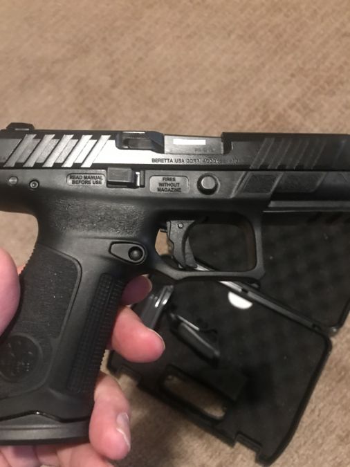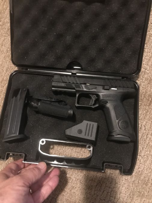 Two months old maybe 200 rounds No trades please Model APX A1 Full Size Barrel Length 4.25" Grip Width 1.10" Overall Height 5.6" Overall Width 1.3" Weight Unloaded 29 oz Frame Size Full Size Activity Defense Caliber 9X19 (PARA) Action Striker-fired Frame Material Polymer Frame Locking System Tilt-Barrel, locked breech Overall Length 7.5" Sight Radius 6.1" Family APX Family Firearm Type Pistols Product Segment Home Defense Magazine Capacity 17 Rounds