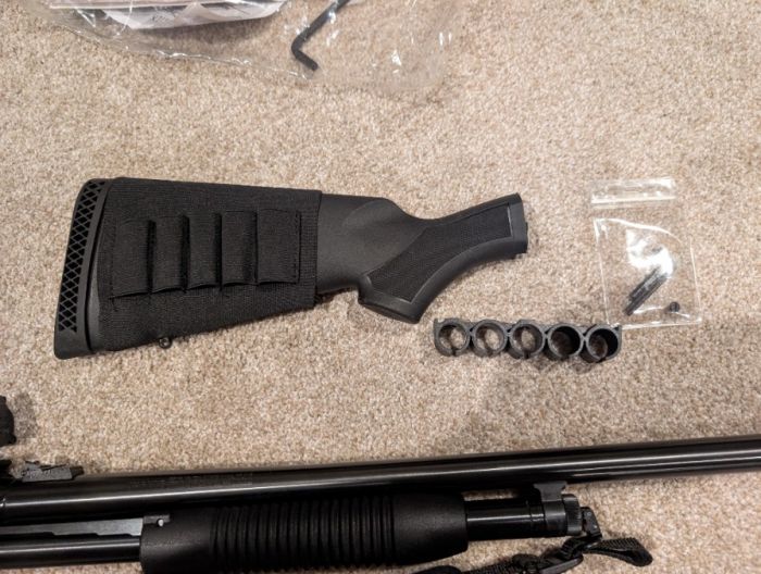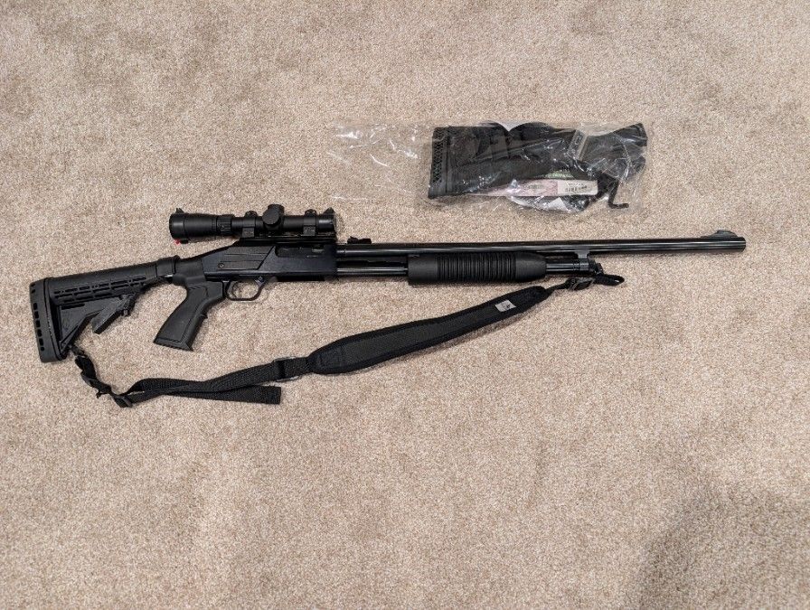 I am selling my pump action rifled bore 12 gauge Mossberg Maverick 88. I added and aftermarket picatinny rail and stock because I used it for hunting in a shotgun/handgun only unit where I moved from by no longer need it. I will include the original parts and stock to return to it factory setup. The scope is an extra $150.