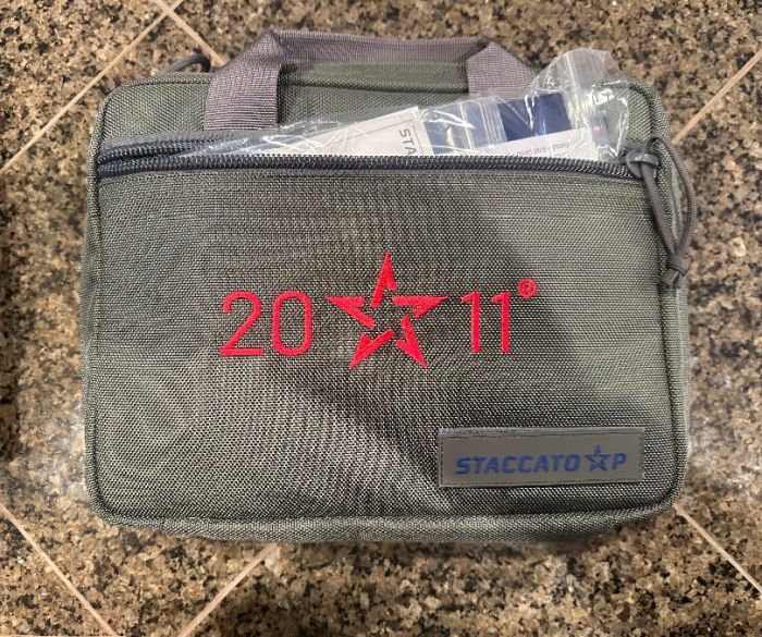 Brand new. Just purchased from scheels and sent to staccato for slide cuts and dlc barrel. All original paperwork and parts included. 2 mags.