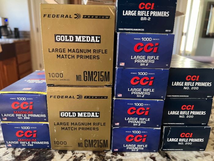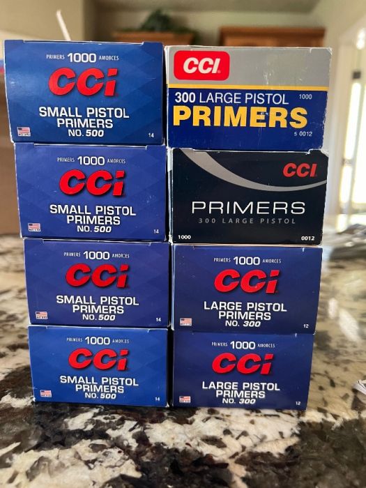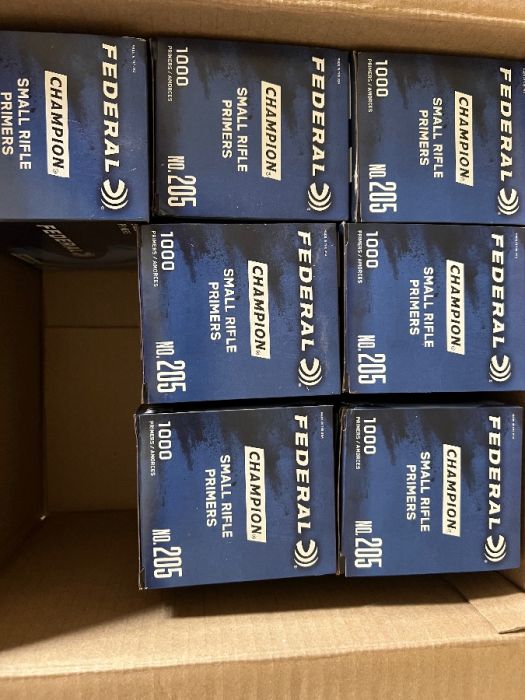 8# 4831SC $385 - 8# IMR 4227 $385 - 8# N565 $420 - IMR 4227 $60/lb - Retumbo SOLD - CCI 250 Large Rifle Mag $95/1000 - Fed 215M SOLD - CCI BR2 Large Rifle Bench Rest $125/1000 - CCI 200 Large Rifle $75/1000 - CCI 500 SOLD - CCI 300 Large Pistol $70/1000 - Fed 205 Small Rifle $65/1000 - BR4 Small Rifle Bench Rest $115/1000