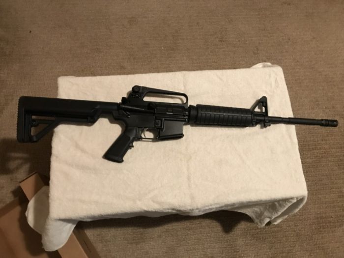 • OBO no trades please Caliber: .223 Rem,5.56x45mm Anderson Manufacturing AM-15 Complete Lower Receiver with BCM® PNT Trigger Assembly for smooth trigger pulls Bushmaster A2 carbine length Lightweight barrel 1/9 twist 223 Rem,5.56x45mm 16 inch barrel upper One 30 round mag included