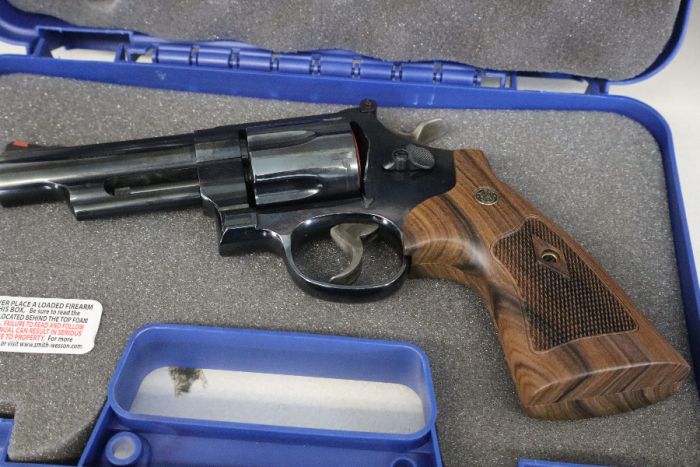 SMITH AND WESSON MODEL 29 CLASSIC, DOUBLE/SINGLE, METAL FRAME, N FRAME, 4"BARREL, 44MAGNUM, 6 ROUNDS, ADJUSTABLE SIGHTS, WOOD GRIPS, BEAUTIFUL FIREARM IN THE CLASSIC FINISH. COMES WITH AMMUNITION IN HARD CASE. $1199, PONDEROSA SPORTS, 6854 HIGHWAY 55, HORSESHOE BEND, IDAHO 83629. 208-793-3121. OPEN 10-6 DAILY. CLOSED ON TUESDAY. LAYAWAY AVAILABLE.