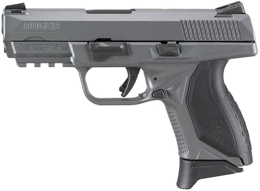 Ruger 8649 American Pro Compact 45 ACP 7+1 3.75" Black Nitride Steel Barrel, Elite Concrete Cerakote Serrated Stainless Steel Slide, Gray Cerakote Polymer Frame w/Picatinny Rail, Textured Wraparound Grip, Right Hand.