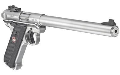 Ruger, Mark IV, Target, Single Action, Semi-automatic, Metal Frame Pistol, 22LR, 10" Bull Barrel, Steel, Stainless Finish, Checkered Synthetic Grips, Adjustable Rear Sight, Ambidextrous Safety, 10 Rounds, 2 Magazines, Hard Case.