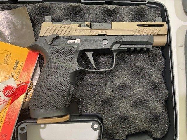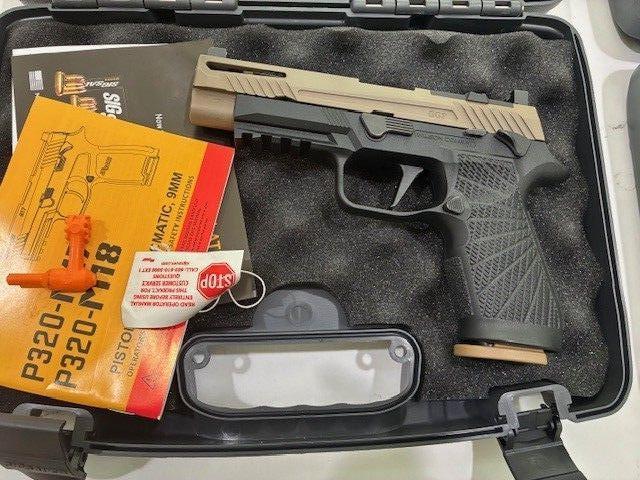 Like new Custom Grey Ghost Precision (Slide assembly) and Wilson Combat (frame) Custom Sig Sauer M17 / P320. This includes Grey Ghost Precision Tungsten Gray RDO ready slide assembly, Trijicon suppressor height Night Sights, match flat trigger, and Wilson Combat frame. As a M17 this includes the 1911-style ambi safety which you can elect to use of not use at the shooter's discretion. I recognize the controversy surrounding the Sig P320 and although I do not necessarily adhere to said controversy, the Buyer must be willing to sign a Bill of Sale. This is like new and have been test-fired only for accuracy. This cost over $1200 and is aggressively priced for sale. I am severely down-sizing my collection. $600 cash. Buyer must be at least 21 years of age, be an Idaho Resident, with a valid ID Drivers License and be willing to sign a bill of sale. Call of Text David. at 208.786.2005, I live in Boise. `