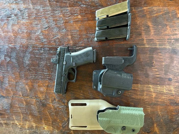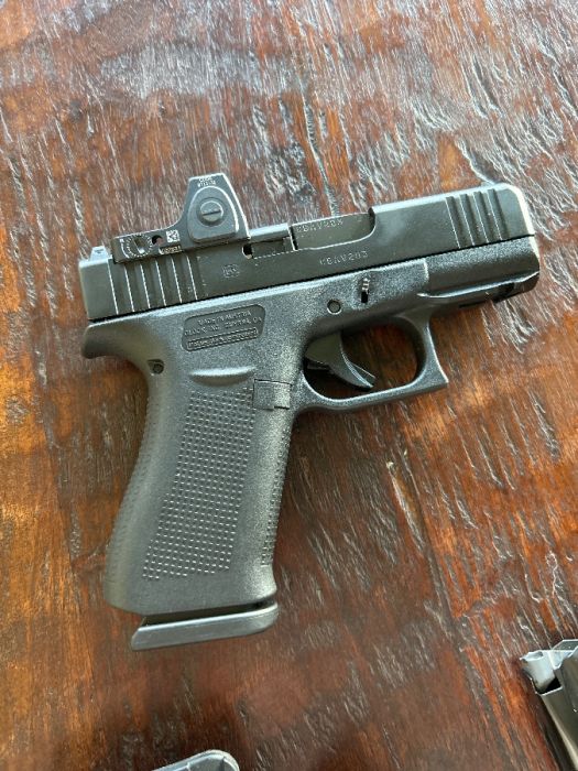 I have a Glock 43x with minimal rounds through it. It has a Trijicon RMRcc, 3 shield 15rd mags, one glock magazine, an outside the waist holster for hiking, an inside the waist holster for concealed carrry and a Safariland holster for a battle belt. No Trades! If you offer i won’t waist our time responding.