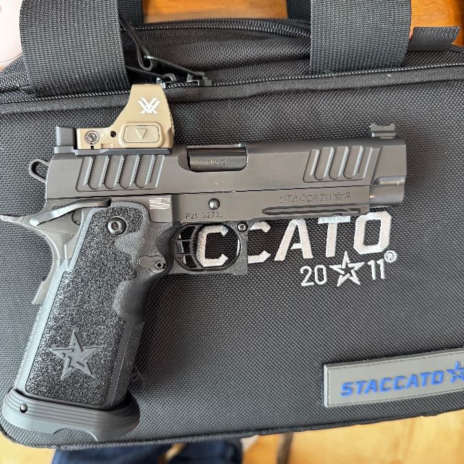 Staccato P steel frame, DLC barrel, great condition less than 500 fired rounds. Comes in original case with Two 17 round staccato mags. Can come with vortex defender and plate for additional 200. Would consider trading for a staccato hd p4, other than that no trades.