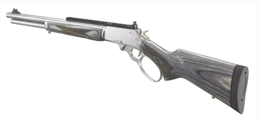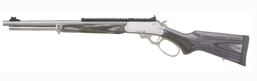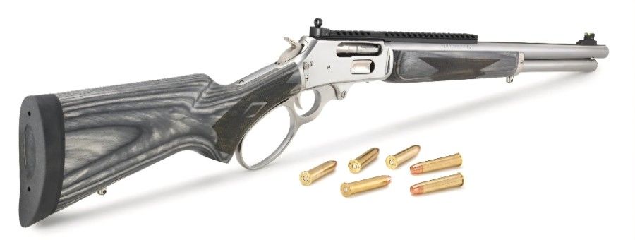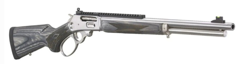 MARLIN 1895 SBL 45-70 19'' 6-Rd RIFLE Receiver, lever and trigger guard plate are CNC machined from 416 stainless steel forgings. Barrel is made of 410 stainless steel and is cold hammer-forged which results in ultra-precise rifling that provides exceptional accuracy and longevity. Threaded barrel, with factory-installed thread protector, has a 11/16'' x 24 pattern to accommodate a muzzle brake or other barrel accessories.-Updated Picatinny rail provides a stable mounting surface for scope rings and a variety of modern optics.-Ghost ring rear sight is adjustable for windage/elevation and tritium fiber optic, high visibility day/night front sight allows for quicker target acquisition in low light. -Six-round, tubular magazine with a loading gate located on the receiver. Soft-rubber buttpad effectively absorbs recoil. Positive, push-button, cross bolt manual safety and traditional half-cock hammer. Reliably feeds a wide range of .45-70 Govt factory ammunition and bullet types. Durable, laminate buttstock and forend remain dimensionally stable in varying weather conditions. Sharp checkering provides an excellent grip in all weather conditions. Spiral-fluted, nickel-plated bolt aids smooth cycling. Oversized lever loop provides clearance for operation with heavy gloves. Slimmed-down forend for an attractive look and comfortable feel. Also includes: Sling swivel studs, offset hammer spur.