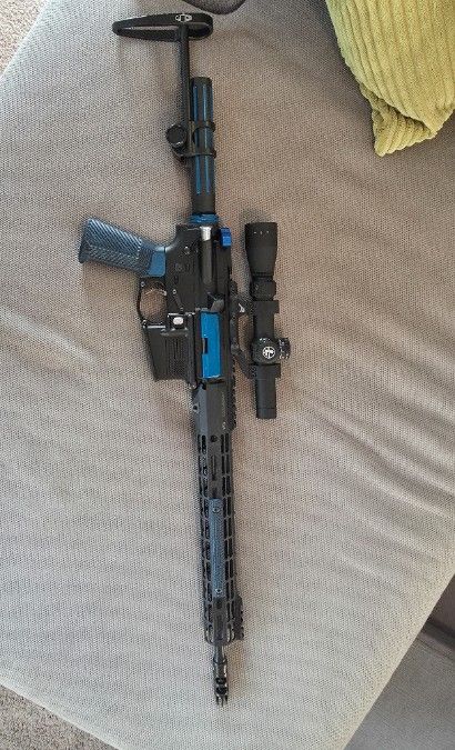 Selling my Aero Precision AR-15. This is a 14.5 inch pin and welded barrel. Optic is not included. Has a Radian BCG and charging handle, VG6 precision muzzle break, VZ grip, and some blue cerakote done on it. I'm asking 1000. Please text.