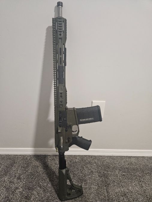 Bkf upper and lower. Kak bcg. Ambi charging handle. I bought this used for a long range project and decided to go with something bolt action.