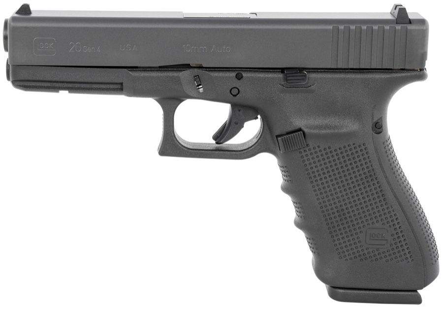 Glock G20 Gen4 Full Size 10mm Auto 15+1, 4.61" Black Steel Barrel, Matte Black Serrated Steel Slide, Black Polymer Frame w/Picatinny Rail, Black Finger Grooved Grip, Ambidextrous, USA Made, Hard Case.