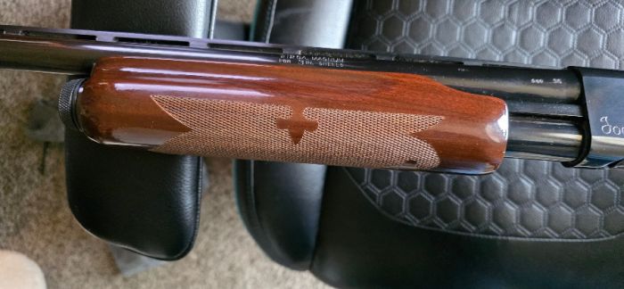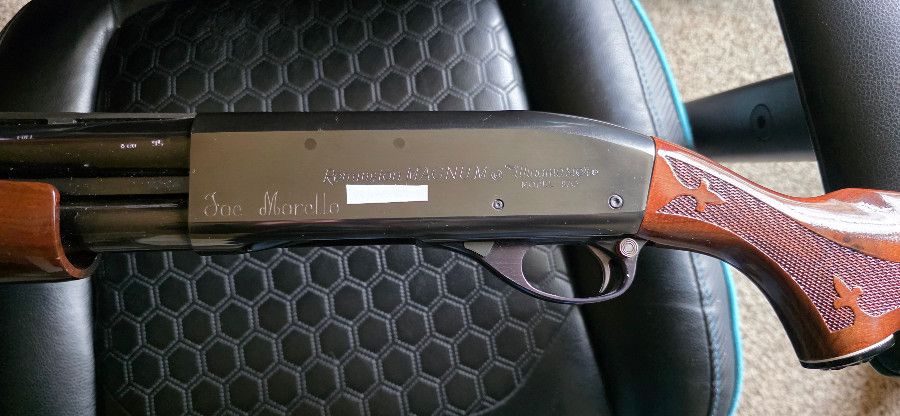 This is a 1996 wingmaster 870 magnum 30" barrel 3" load never fired not even once. This was a gift to my father in law and his name was etched into the receiver. He was not a hunter so it was just a display item for him. The time has come for use to sell this super nice shotgun the over all condition is mint I have researched high and low looked at sold listings and correct ones and this gun is in better shape than any of the listings I have come across for its age. this is a once in a life time opportunity to get a never fired 1996 wingmaster 870 magnum 30 inch vented barrel shotgun