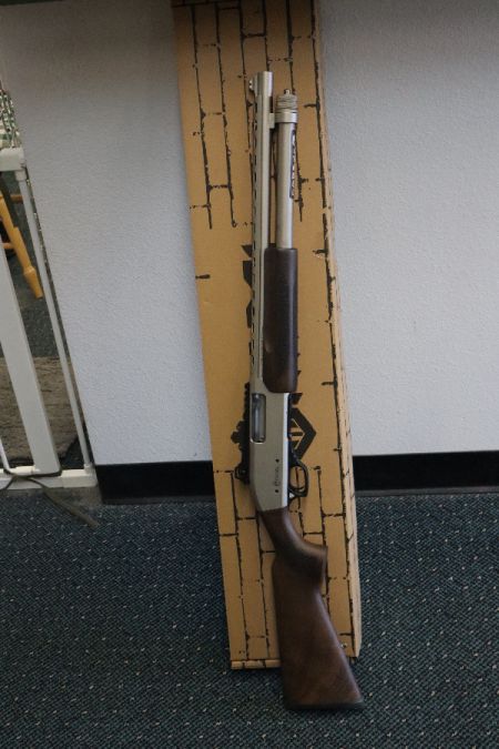 CITADEL MARINER, PUMP ACTION SHOTGUN, 12 GAUGE, 3"CHAMBER, 18.75" CHROME LINED BARREL, MATTE FINISH, SILVER NICKEL, WOOD FURNITURE, 4 ROUNDS, 3 CHOKE TUBES, ADJUSTABLE REAR SIGHT WITH PICATINNY RAIL, FULL LENGTH BARREL HEAR SHIELD, SIDE SHELL HOLDER, NEW JUST ARRIVED WITH 3 BOXES OF AMMUNITION. $399. PONDEROSA SPORTS, 6854 HIGHWAY 55, HORSESHOE BEND, IDAHO 83629. 208-793-3121. OPEN 10-6 DAILY. CLOSED ON TUESDAY.