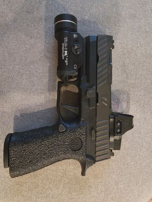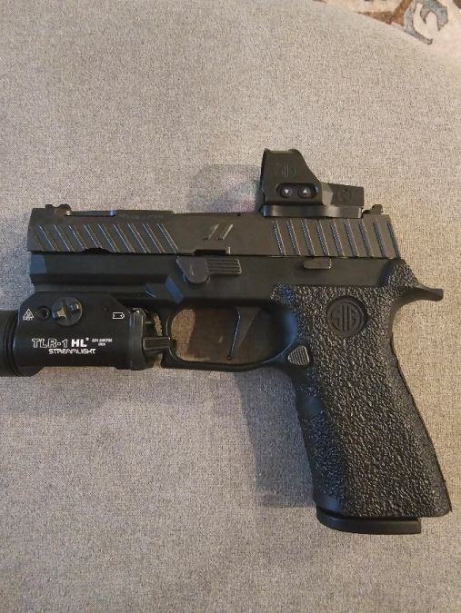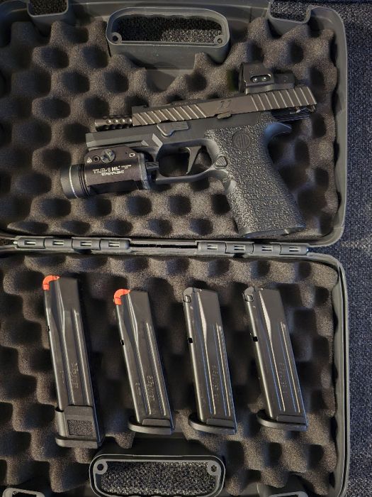 ZEV Tech P320 X-Carry with lots of extras. Includes upgraded slide, barrel, sights and grip. Includes Romeo 1 Pro red dot and TLR1 HL Streamlight. Will include three 17rd and one 21rd extended mag. Potentially open to trades.