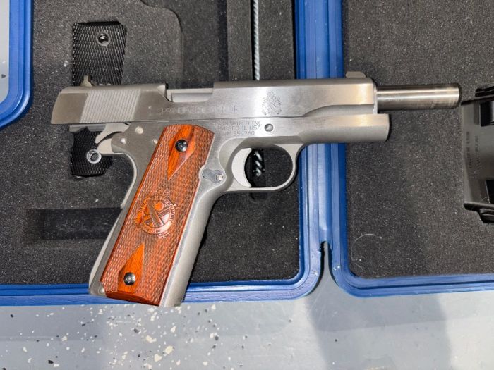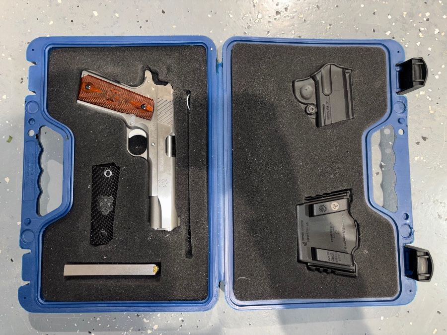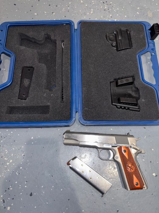 Springfield 1911-A1 in .45 ACP — freshly cleaned and ready to go. It has a few minor scrapes and wear marks as expected on a used firearm, so check the photos for all angles. Comes with 1 magazine, interchangeable black grips, hard case, holster, and mag holster. The outside of the case is a bit worn, but it still protects everything inside just fine. I’m only selling because I’m looking for something different. It’s a beautiful pistol and runs flawlessly. $620 cash — bill of sale required. Pickup in the Twin Falls/Filer area. Also open to trades for a Ruger Precision .17 or a similar rifle. Best way to reach me is by text: (208) four40-zero5 75