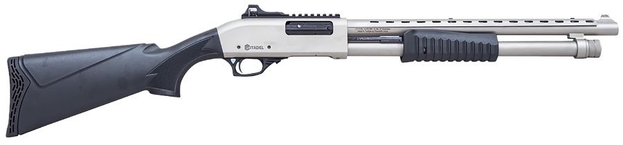 Citadel Mariner 12 Gauge Pump 3" 4+1 18.50" Black Full Heat Shield Barrel, Black Picatinny Rail Steel Receiver, Fixed Black Synthetic Stock.
