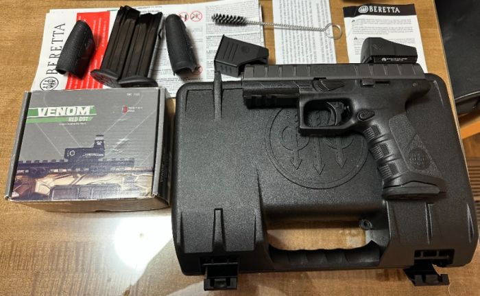 Baretta APX 9mm...vortex venom red dot 3moa vmd-3103.... 3-17rd mags... 3 grip panels .... oe box and stuff, nice piece...cash only, NO trades NO best offers NO tax...please have an idaho CCP for my records only... You will be a better person, and do better at the pearly gates if you help me buy my Charger Hellcat, thank you
