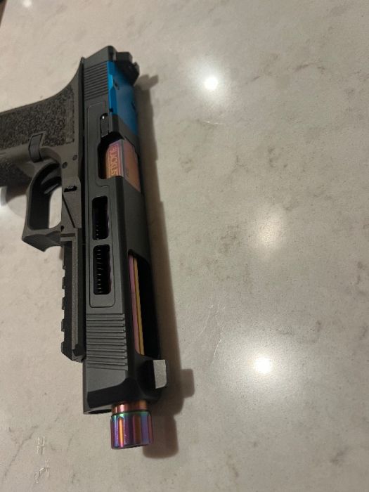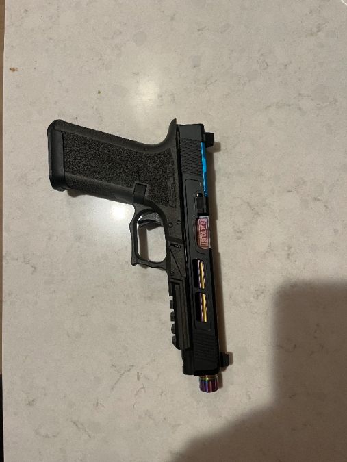 I have a Glock 34 style p80 9mm , Roughly 200 rounds shot The barrel is a Blacklist threaded barrel AmeriGlo H3 GZ Tritium sights . Installed by overland armory $450 or willing to trade for a nice Right hand bow , or any 22lr threaded rifles
