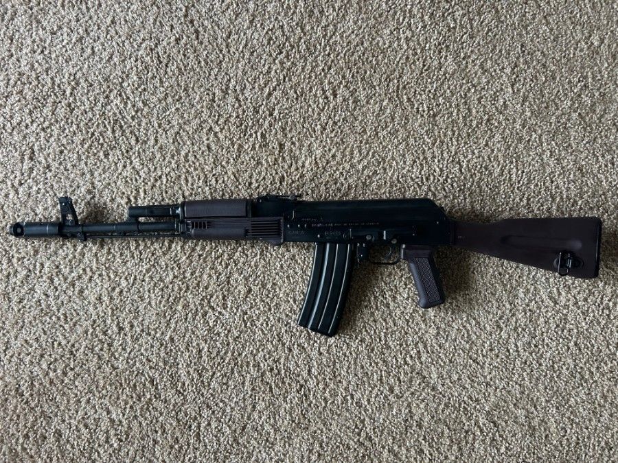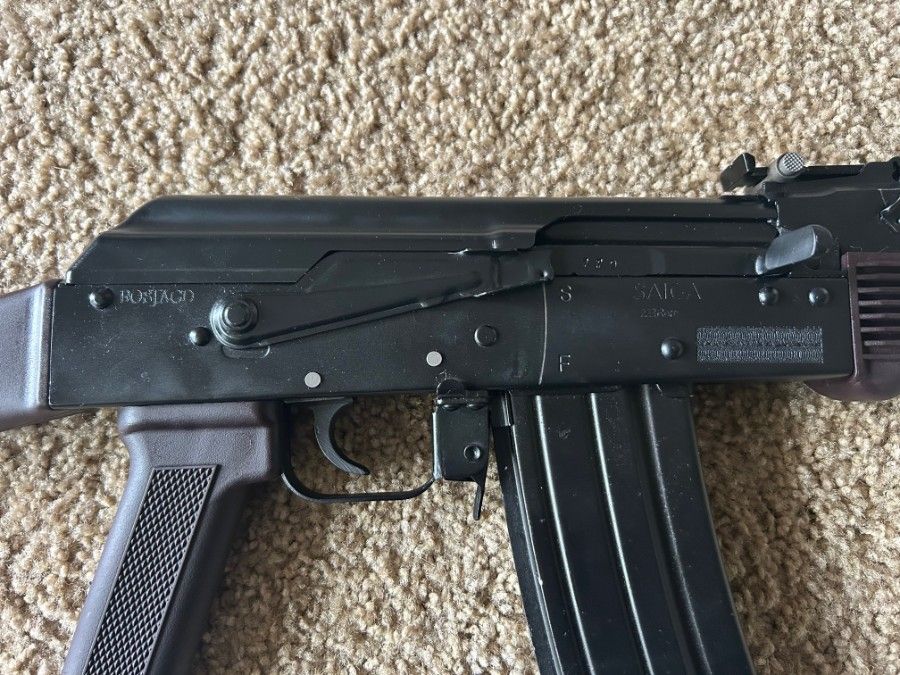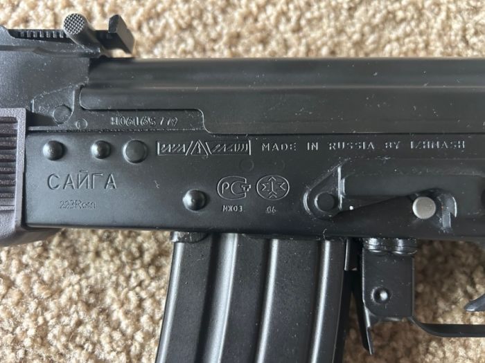 Genuine Russian Saiga with less than 200 rounds through it, came with the original box, rifle manual, sling, and 10 round Izhmash stamped polymer magazine. Will include the manual, sling, original magazine, and a steel 30 round German WBP magazine. I also purchased 4 VERY tightly fitting 30 round Polish Beryl mags that I tried to dremel the rear locking lugs on (sorry AK guys) to loosen the fitment but was unsuccessful. If interested, I can add the Beryl mags as well.