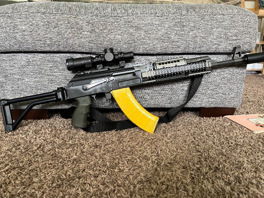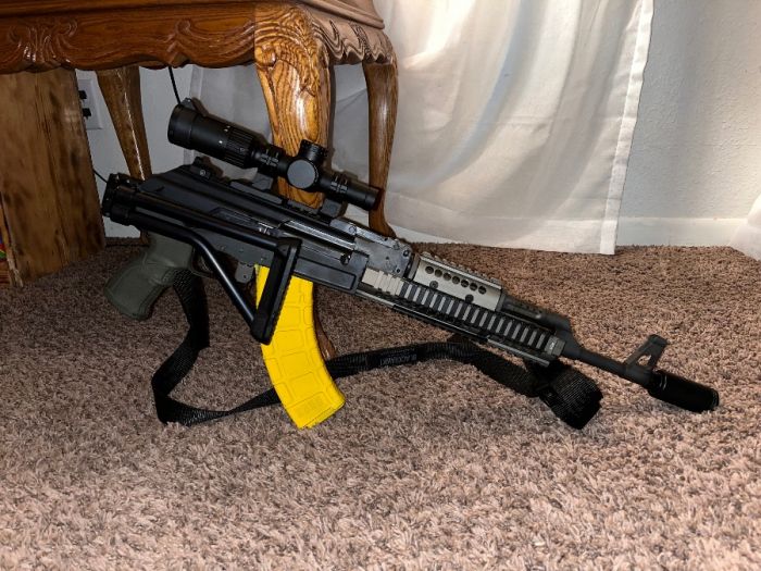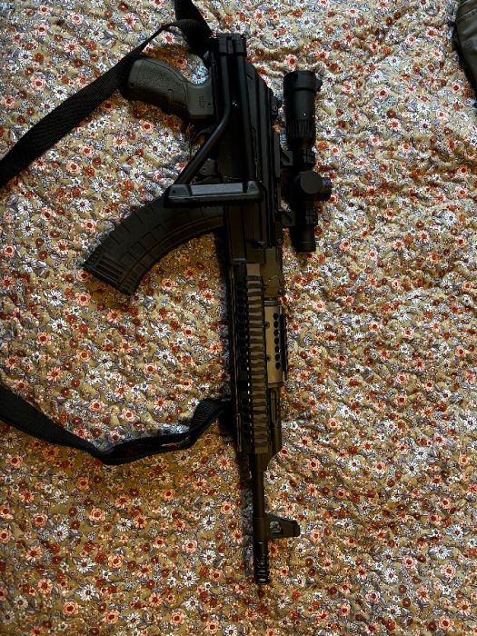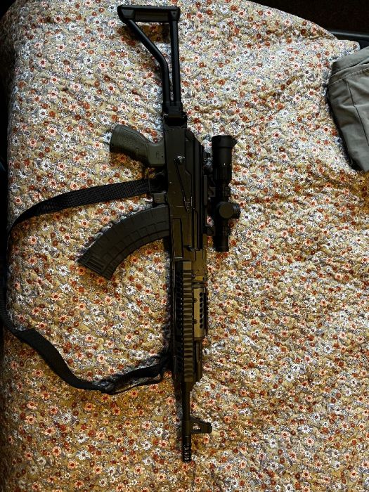 Century Arms C39 AK-M 47 rifle for sale. Comes with a custom galil style folding stock, Texas Weapon Systems dog rail dust cover and rear peep sight, Monstrum 1-4x20 scope, and a jmac muzzle break. It has its scuffs and rough spots but like all AK’s she’s true and fires when ready. This is not one that I ever intended on selling but hard times have come knocking and I can’t pay the bills with this. Comes with a nice 3 mag rifle case and two 30’s.